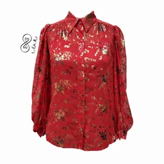 شومیز مجلسی زنانه نگین دار کد 13128001، در سایزبندی 40 تا 48 رنگ قرمز. این بلوز از جنس کرپ ترک می باشد و در قسمت سمت چپ آن نگین دار می باشد. شومیز دکمه مخفی می باشد و می توان آن را با انواع شلوار به زیبایی ست نمود. انواع شلوار قد 90 و شلوار بوت کات ( دمپا ) با این نمونه شومیز مناسب می شود . شومیز آستین کیمونو بوده و قد آن از سرشانه 75 سانتی متر می باشد. لطافت و لَختی زیبایی که پارچه این شومیز مجلسی دارد به ایجاد تنخور هر چه زیباتر کمک می نماید.