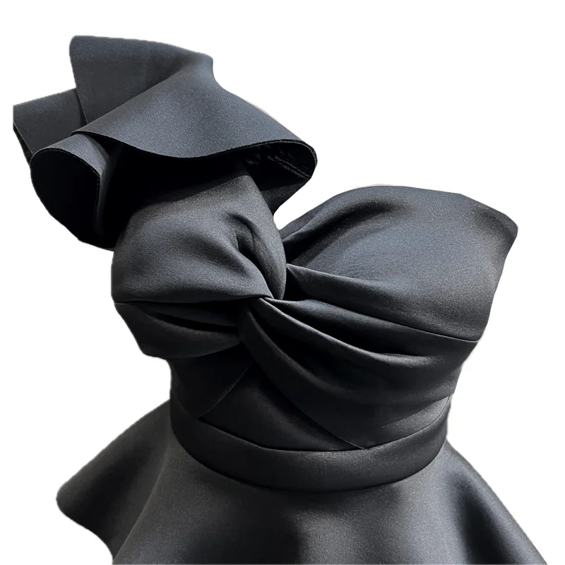 پیراهن عروسکی مشکی کد ce210 ، در سایزبندی 36 تا 44 . این پیراهن تک سرشانه بوده و کاپدار می باشد. پیراهن تا پایین کمر زیپ دار است. بالای بخش شکم در پیراهن یک ردیف پارچه به کار گرفته شده است که پوشاننده شکم در پیراهن می باشد. قد پیراهن از سرشانه 95 سانتی متر می باشد. این پیراهن زیبا را می توانید با انواع صندل نگین دار و ساده استایل نمایید.