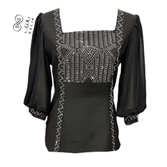 شومیز مجلسی از جنس ساتن بوده و جلو و پشت نگین دار می باشد