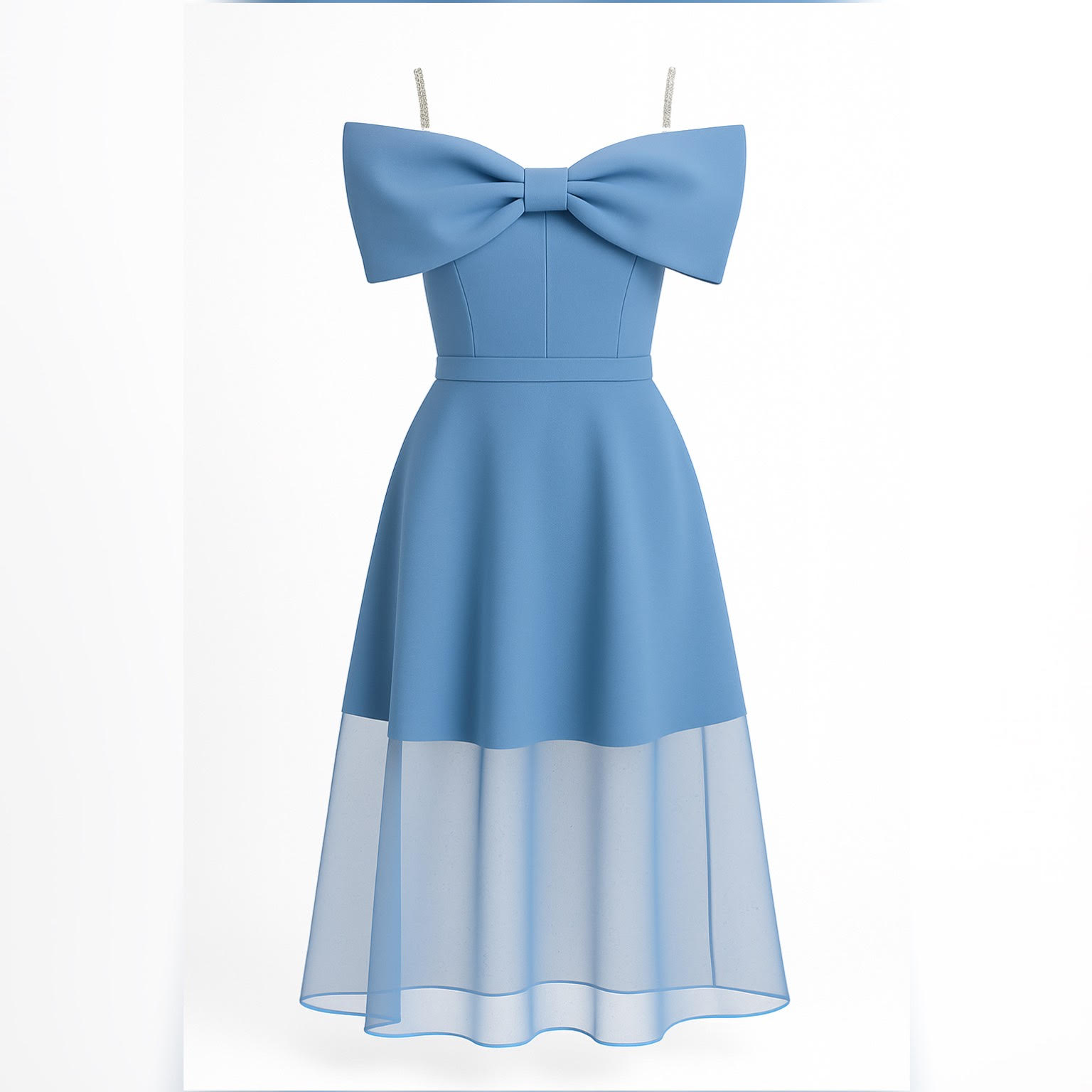 پیراهن عروسکی بلند pre130 آبی ، در سایزبندی 38 تا 46 . این پیراهن از جنس پارچه غواصی بوده و رویه دامن از جنس تور می باشد . پیراهن دارای بند نگین دار بوده پشت پیراهن تا قسمت پایین کمر زیپ دار است.