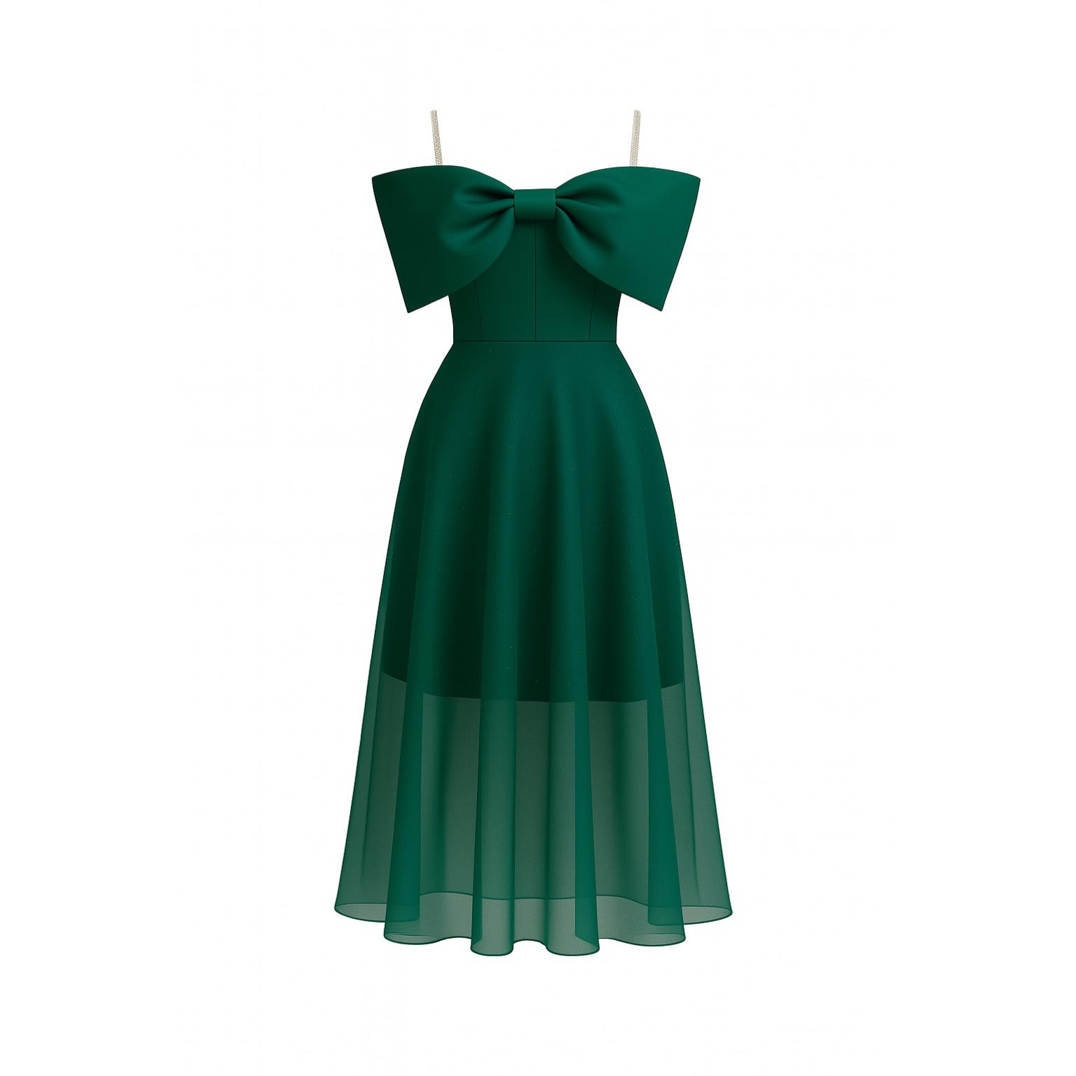 لباس مجلسی عروسکی بلند pre130 سبز تیره ، در سایزبندی 38 تا 46 . این پیراهن از جنس پارچه غواصی بوده و رویه دامن از جنس تور می باشد . پیراهن دارای بند نگین دار بوده پشت پیراهن تا قسمت پایین کمر زیپ دار است.