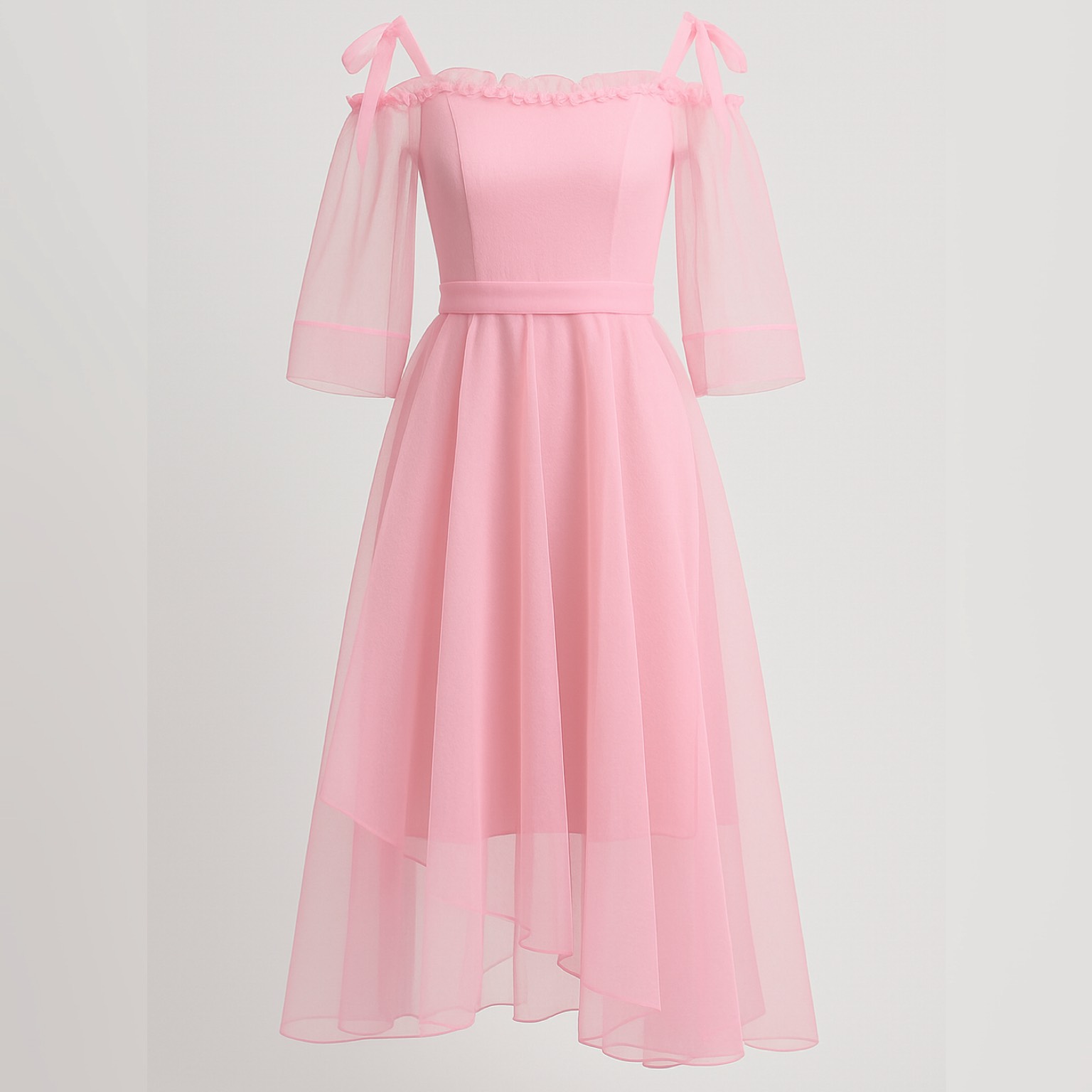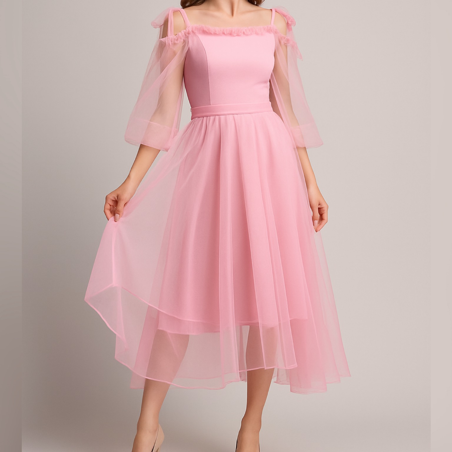 پیراهن مجلسی عروسکی توری بلند کد ce491 صورتی ، در سایزبندی 36 تا 42 . این پیراهن دارای تور دو لایه طبقه ای در بخش دامن است دامن و بالا تنه دارای آستر هستند. بند روی سرشانه گره ای است.