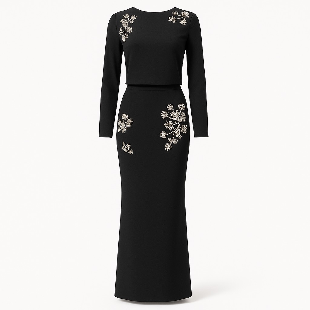 ست کراپ و دامن مجلسی کد da361 مشکی ، در سایزبندی 36 تا 46 . کراپ و دامن تماما سنگدوزی است.
