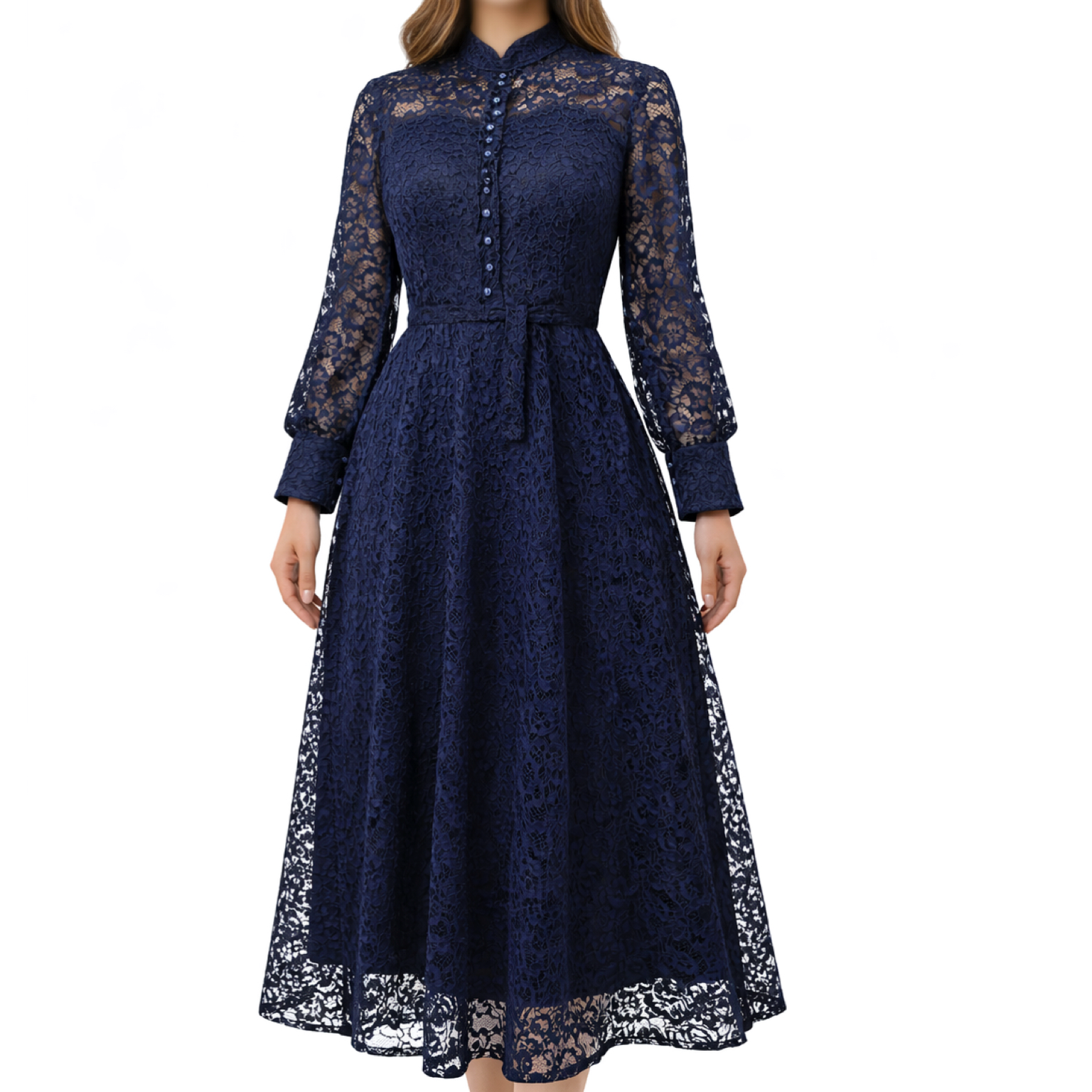 مشخصات پیراهن میدی دانتل کد 4058 سرمه ای