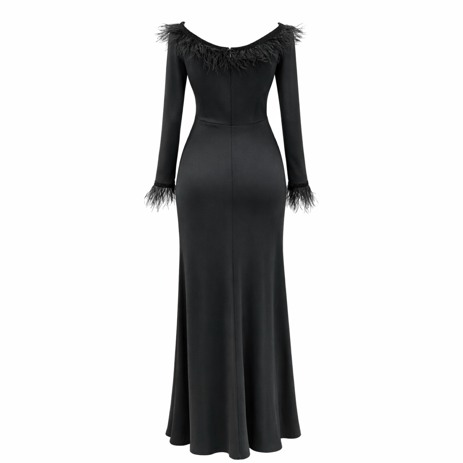 پیراهن ماکسی یقه دلبری شیک و با پر کار شده در اطراف یقه در سایزبندی 38 تا 46 . پیراهن مدل ماهی بوده و جلو چاکدار می باشد. این پیراهن ماکسی از جنس کرپ کش است.