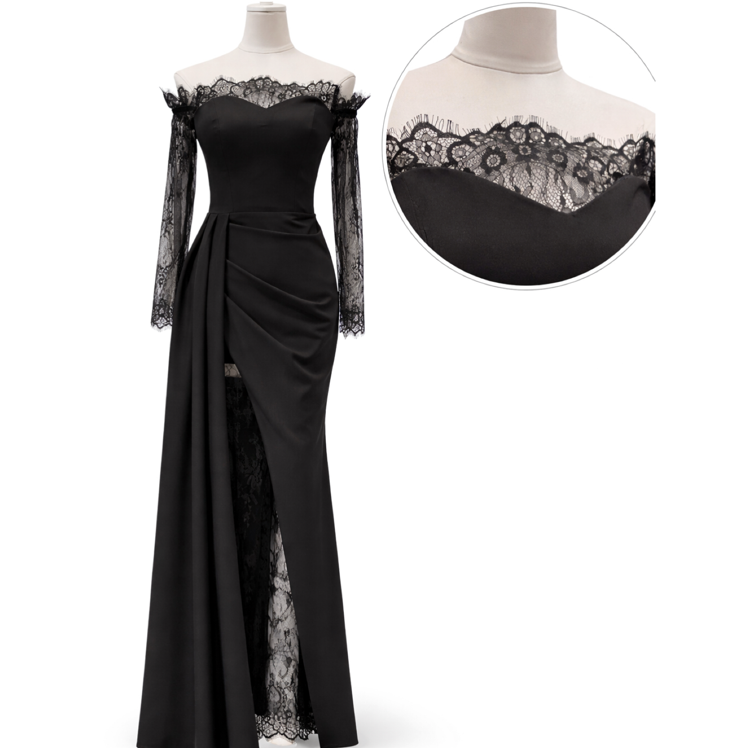 پیراهن ماکسی ترکیب پارچه کرپ و دانتل فرانسه است