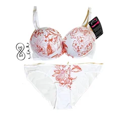 ست شورت و سوتین اسفنجی ترک برند NBB کد 4489 رویه گیپور و نیم جکدار. سوتین این ست ترک بسیار زیبا، پشت طرح دار بوده و سوتین دو قزنه و دارای 3 ردیف قزن می باشد. شورت این ست زیبا گیپور با فاق نخی بوده و سایز شورت و سوتین با یکدیگر هماهنگ می باشد و تغییر می نماید.