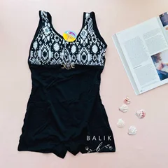 مایو زنانه دامن دار کد 4193، دو لایه ، بخش زیرین مایو : پادار و رویه دامنی. مایو فری سایز و مناسب برای سایز 38 تا 42 می باشد.مایو دامن دار ، دارای بند گره ای روی کمر می باشد که به ایستایی بهتر آن کمک می نماید.