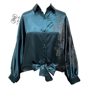 این شومیز ساتن از نوع جلو گره ای است