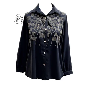 شومیز کار شده ، جلو دکمه دار و سر آستین دکمه دار است